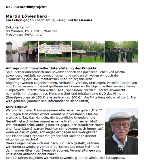 Diese Seite wird von Freunden von Martin Löwenberg betreut. Wir freuen uns über die Zusendung von weiteren Filmausschnitten, Reden, Bildern und Texten, für die Dokumentation auf martinloewenberg.de.